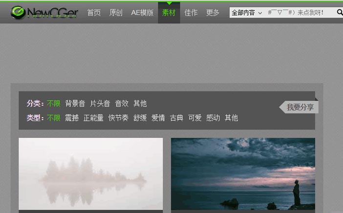 這個網站的音頻素材大多為一些新的背景音樂類素材,分類也較為科學,比較符合按照音樂情緒來查找素材的習慣,所以推薦給大家。當然,這個網站的視頻類素材,AE模板等素材也是很好用的。